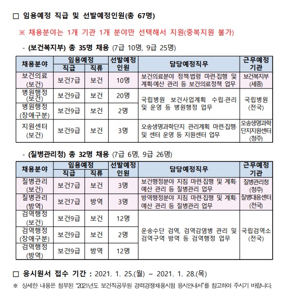 코로나19가 발생하게 되면서 수많은 직렬 공무원들에게 영향을 주었지만 그 중에서도 해당 질병을 담당하고 관리하는 보건복지부 보건직 공무원 채용시험이 가장 많은 영향을 받았다고 생각합니다. 그동안 보건 관련 분야 공무원으로 해당 시험을 준비하는 수험생들에게는 많이 알려졌지만 관련 없는 분야에 있는 분들에게는 정확히 어떤 공무원인지 알려질 기회가 많지 않았다고 합니다. 게다가 보건복지부 보건직 공무원 채용시험의 경우에는 응시자격에 대한 자격조건이 확실하기 때문에 응시인원 자체가 많지 않은 시험으로 준비하는 수험생도 드물지 않았다고 합니다.