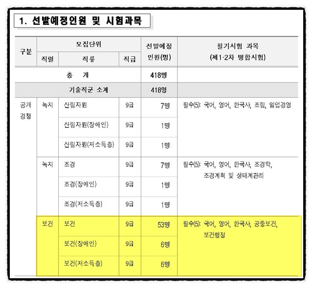 보건복지부 보건직 공무원 채용시험의 경우에는 해당 응시자격으로 요구되는 조건이 다른 직렬에 비해 신경써야 할 부분이 많다고 합니다. 해당 공무원을 채용하는 기관에서 인정하는 학과를 전공해야 하며, 관련 학과로 인정받기 위해서는 지정된 5과목을 이수해야 하는 조건이 있습니다. 게다가 학과장 추천서도 필요하기 때문에 쉽게 준비를 결정할 수 있는 직렬은 아니라고 해요. 이렇게 시험을 볼 수 있는 인원도 한정적이지만 해당 시험에서 채용하는 인원도 적은 수준을 유지했다고 합니다.